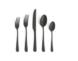 Sztućce Amefa Austin wyróżniają się autentycznym wyglądem retro oraz eleganckim, smukłym kształtem. Matowo-połyskujące czarne wykończenie sprawia, że zestaw prezentuje się wyjątkowo stylowo i doskonale wpisuje się w modne aranżacje stołu.