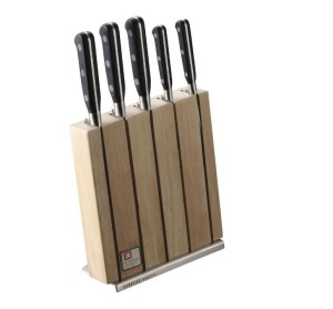 Zestaw zawiera drewniany blok, który umożliwia wygodne przechowywanie noży i jednocześnie stanowi elegancki element wyposażenia kuchni. Dzięki temu wszystkie najważniejsze noże kuchenne są zawsze pod ręką i bezpiecznie przechowywane.