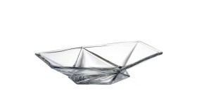 Misa na stole staje się wyjątkowym akcentem dzięki charakterystycznemu, geometrycznemu wzornictwu, które przywodzi na myśl motywy origami. Precyzyjnie wykonane linie i krawędzie tworzą efekt dynamicznej przestrzeni, która doskonale komponuje się z nowoczesnymi i klasycznymi wnętrzami. Dzięki swojej przejrzystości kryształ odbija światło w subtelny sposób, nadając pomieszczeniu eleganckiego blasku.