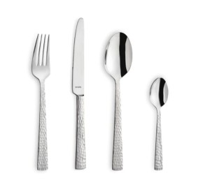 Kolekcja Felicity wyróżnia się szorstkim, młotkowanym zdobieniem na uchwycie, które kontrastuje z polerowaną powierzchnią sztućców. To nowoczesne połączenie klasyki z minimalistycznym stylem sprawia, że zestaw doskonale prezentuje się zarówno przy codziennych posiłkach, jak i podczas uroczystych okazji.