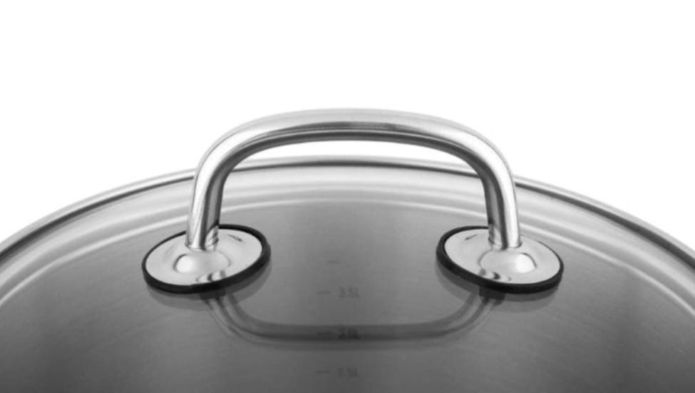 Szklana pokrywka o grubości 4 mm z obręczą ze stali nierdzewnej nie posiada otworu parowego i idealnie przylega do garnka. Skutecznie cyrkuluje parę, zatrzymuje ciepło, aromat i wartości odżywcze potraw, sprzyjając zdrowemu i energooszczędnemu gotowaniu.