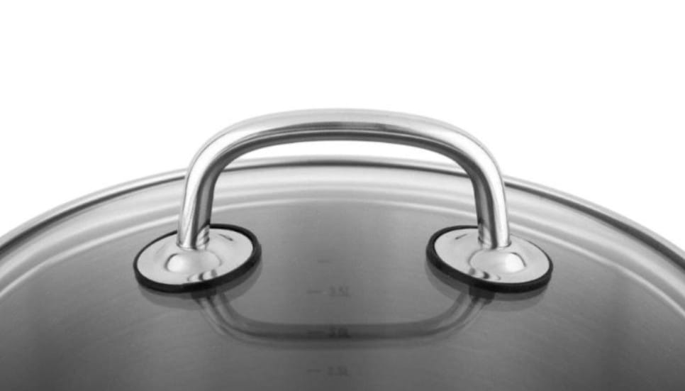 Pokrywka ze szkła hartowanego o grubości 4 mm z obręczą ze stali nierdzewnej nie posiada otworu parowego i idealnie przylega do garnka. Zapewnia cyrkulację pary, zatrzymuje ciepło, aromat i składniki odżywcze, umożliwiając energooszczędne i zdrowe gotowanie.