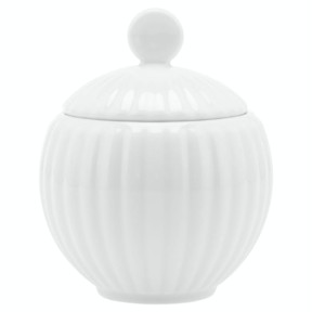 Daisy cukiernica 250 ml biała to klasyczny i funkcjonalny element zastawy stołowej, który doskonale uzupełni serwis kawowy lub herbaciany. Subtelna forma oraz ponadczasowa biel sprawiają, że cukiernica harmonijnie komponuje się z filiżankami, spodkami i dzbankami z kolekcji Daisy.