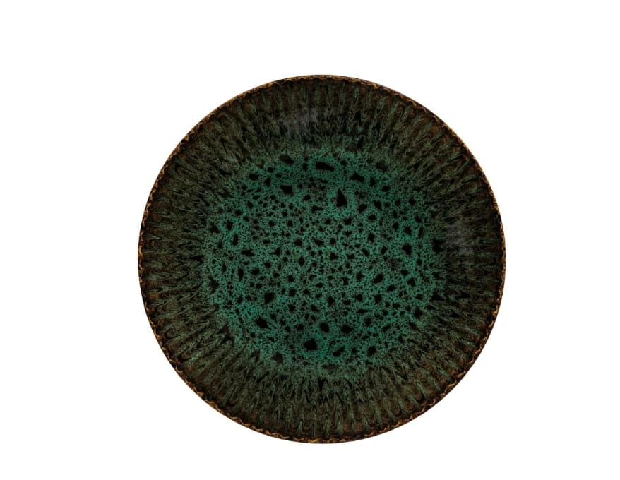 - Każdy talerz jest inny – szkliwo reaktywne tworzy unikalne wzory i odcienie zieleni