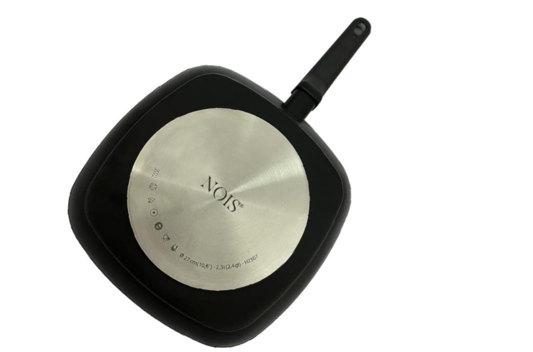 Patelnia grillowa Silver NOIS 28×28 cm to idealny wybór dla miłośników zdrowego gotowania, grillowania w domu i szybkich, aromatycznych potraw. Doskonała do steków, warzyw, ryb i potraw jednogarnkowych, zapewnia równomierne grillowanie dzięki nowoczesnej konstrukcji i wysokiej jakości materiałom